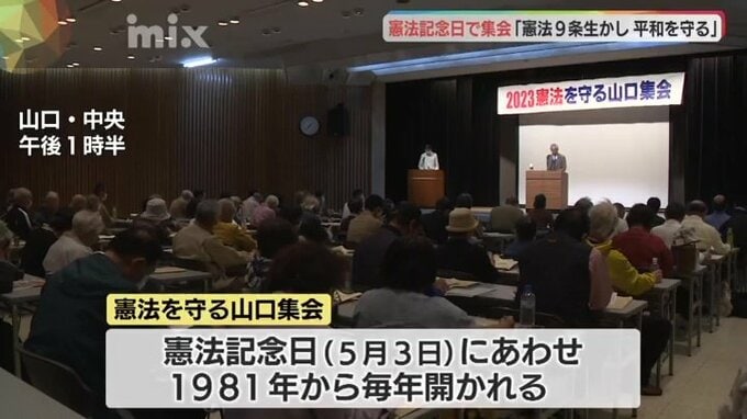 きょうは憲法記念日 憲法を守る山口集会 2023年5月3日(水) 19:56 国内 きょうは憲法記念日です。憲法をいかして平和を守ろうという集会が山口市で開かれました。「憲法を守る山口集会」は5月3日の憲法記念日にあわせ、1981年から毎年開かれています。憲法学者で、広島市立大学で平和研…
