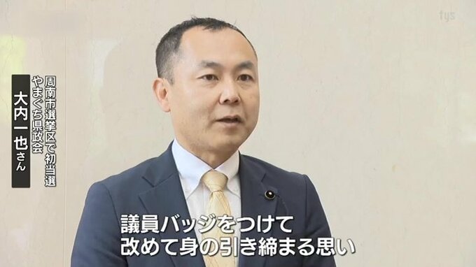 大内一也さん「議員バッジをつけさせていただきまして、改めて身の引き締まる思い。ようやくスタートラインに立って、県民の皆さまのお役に立てるなという実感が湧いてきた」