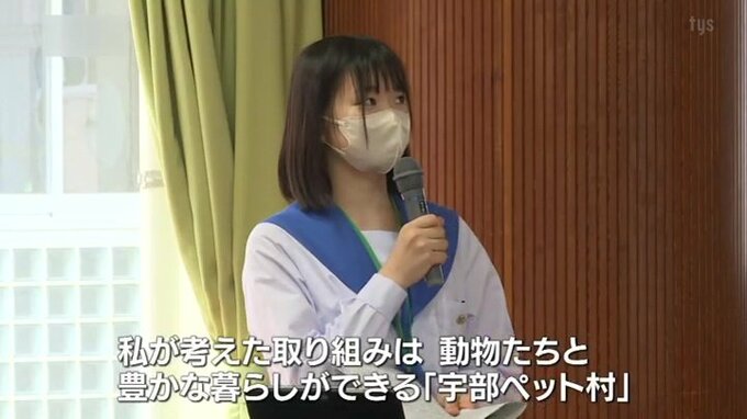 「私が考えた取り組みは動物たちと豊かな暮らしが出来る宇部ペット村を作ることです」