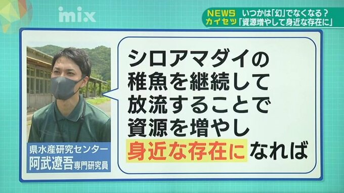 研究に取り組む県水産研究センターの阿武さんは「シロアマダイの稚魚を継続して放流することで資源を増やし、身近な存在になれば」と話しています。