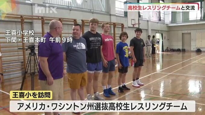 下関市の王喜小学校を訪れたのは、アメリカ・ワシントン州の選抜レスリングチームの高校生とコーチ、あわせて6人です。