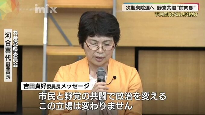 共産党県委員会・河合喜代副委員長「市民と野党の共闘で政治を変える。この立場は全く変わりませんし、すでに市民連合から共闘をとの要請を受け取りました。最大限努力していきます」