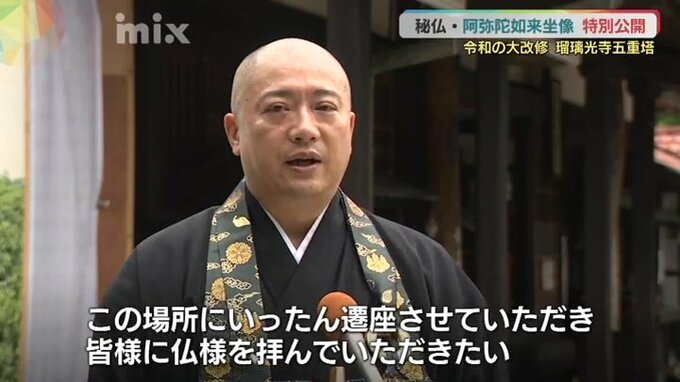 瑠璃光寺・渡邉博志住職「この塔の改修に時間がかかるということで、阿弥陀如来像と大内義弘公を初めて外に出してこの場所にいったん遷座させていただいて、皆さまに仏様を拝んでいただきたいと」