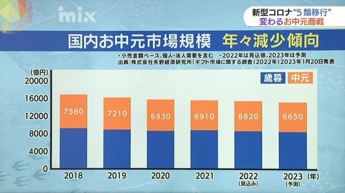 ただ、市場調査とマーケティングの矢野経済研究所によると、国内のお中元市場の規模は年々減少傾向にあるということです。そんな中、近年お中元商戦はどのように変化してきているのでしょうか。まずは山口市の百貨店・山口井筒屋に伺いました。
