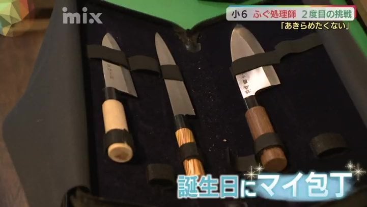 練習では、家族も見守る中、しっかり片づけまで終わらせ・・制限時間20分のところ、13分36秒でさばき切りました。去年の半分以下の早さです。智弥くんは悔しい思いをした1年前から30匹以上のフグをさばき、練習を重ねてきたといいます。