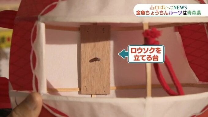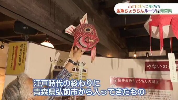 「柳井に金魚ちょうちんがあるのは、江戸時代の後期に、ここの柳井の商人が青森県の弘前市から持って帰って『この金魚ちょうちんかわいいな』と大人気になって大人たちが子どものために作り始めたと」