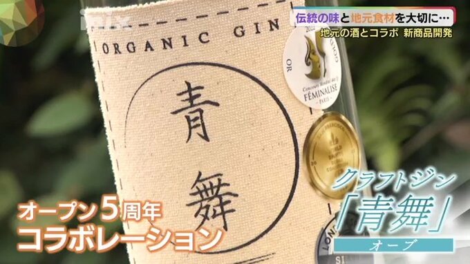 そのポポロがオープン5周年にコラボレーションした商品が、クラフトジンの「青舞(オーブ)」。長門市に蒸留所を構えるNeo BlueDistilleryが開発しました。無農薬栽培された13種類のハーブを使い、高級旅館のラウンジやバーなどに採用されている高級酒です。