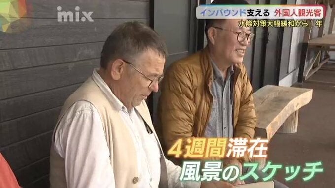 ドイツから訪れた画家の男性は日本に4週間滞在し、全国を旅して風景のスケッチをしています。