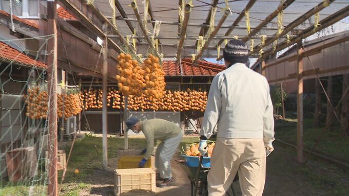 きょうで作業開始から4日目。今週いっぱいかけて1万2000個あまりの干し柿を作るそうです。