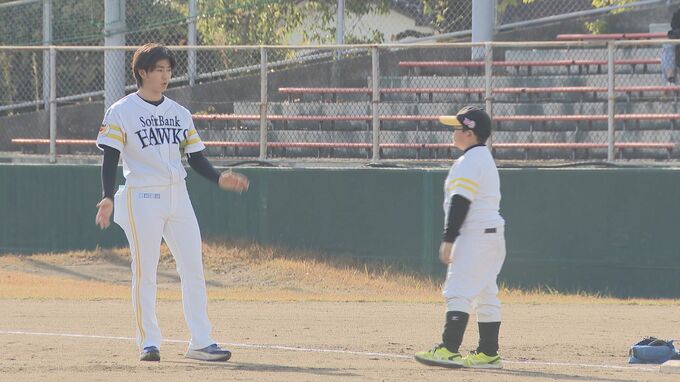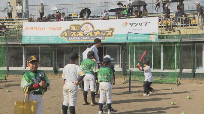 子どもたちに野球の楽しさを感じてもらおうと、福岡ソフトバンクホークスの選手による野球教室が23日、山口県周南市でありました。
