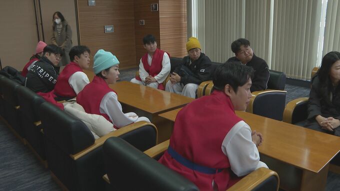 市役所を訪れたのは、韓国の伝統舞踊団「one stage 韓」のメンバーら10人です。