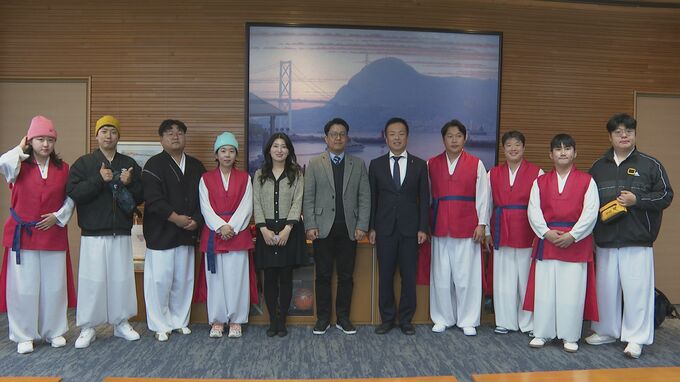 山口県下関市で開催された「リトル釜山フェスタ」に出演した韓国の伝統舞踊団が24日、下関市長を表敬訪問しました。