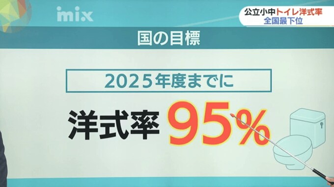 国の目標は2025年度までに洋式率95パーセントで、工事にかかる費用の補助も行っています。
