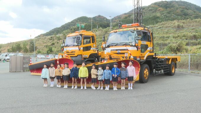 路面に雪が積もる本格的な冬を前に30日、萩光塩学院幼稚園(山口県萩市)の園児12人が除雪車などを見学しました。