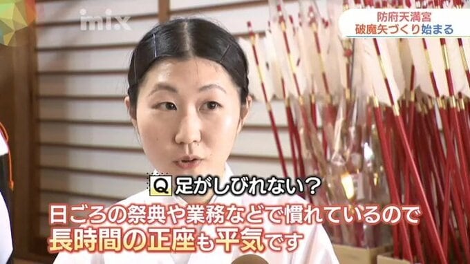 みこ・南舞さん:「(ずっと正座ですよね?足がしびれないんですか?)そうですね、日ごろの祭典や業務などで慣れておりますので、長時間の正座も平気です」