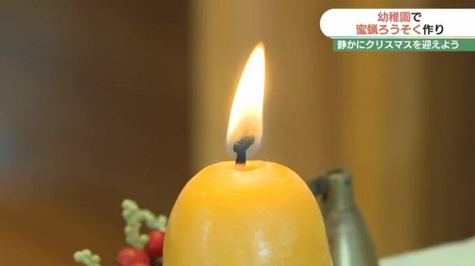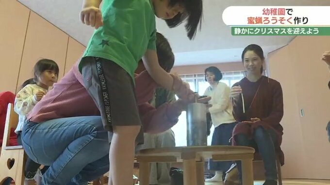 クリスマスを前に宇部市のメルヘンこども園で、園外から7組の親子を招き、蜜ろうのろうそく作り体験会が開かれました。