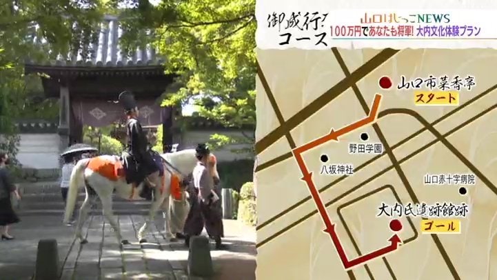 歴史に刻まれたものとは、4月からはじまった将軍体験コース。大内氏の第30代義興が室町幕府前、将軍の足利義稙をもてなした、中世最大の催事を再現するという企画。簡単にいえば参加者はぜいたくにもてなされ、将軍気分を味わうことができるんです。