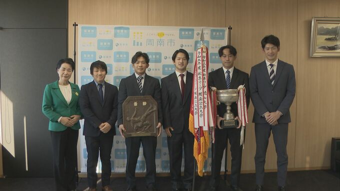 16日、周南公立大学の小石原央義キャプテンら4人が、藤井律子市長を訪ねました。