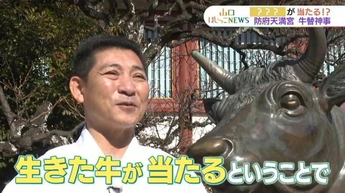 「毎年2月の2日・3日に『牛替え神事』が行われますけれどもあの、まぁ・・・“生きた牛”が当たるということで」