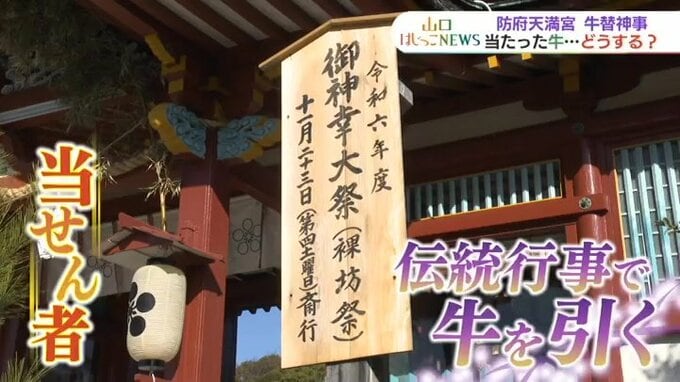 そう、当選者は防府天満宮の伝統行事で牛を引く重要な役を与えられるんです。