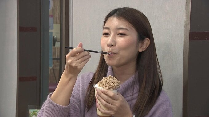 「飲むモンブランって初めての体験なので、甘いのかなって思ってたんですけど、下のバニラのモンブランの部分、甘さ控えめですっきりと食べられる。上の栗のペーストはしっかり栗の風味が感じられます!」