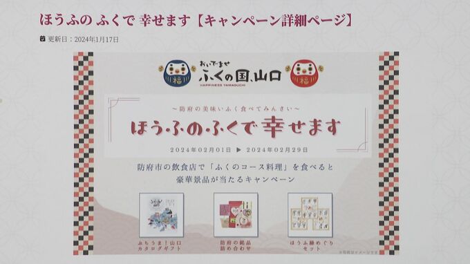 「ほうふのふくで幸せます」キャンペーンは、防府観光コンベンション協会が市内で提供されるフグ料理をPRしようと企画しました。
