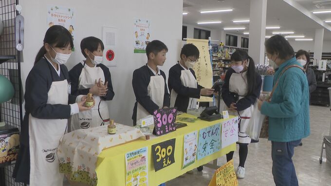 地域の人たちを笑顔にしようと、児童が2年がかりで取り組んだ商品開発学習の成果です。