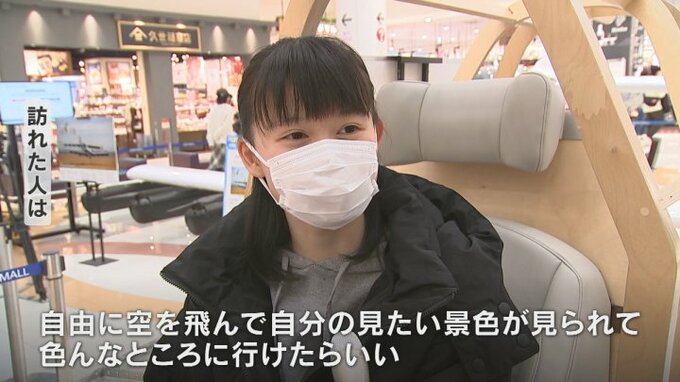 訪れた人たちはコックピットに座り、次世代の移動手段のイメージを膨らませていました。