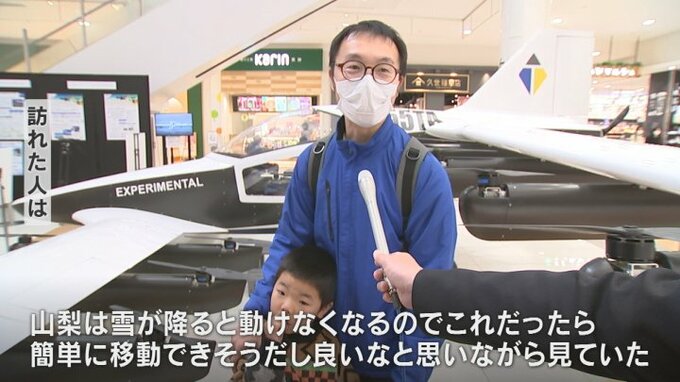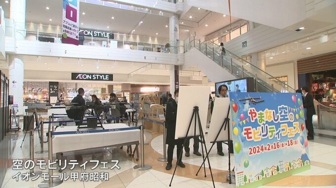 イオンモール甲府昭和で始まったイベントは、空の移動革命の技術を知ってもらおうと県が企画しました。