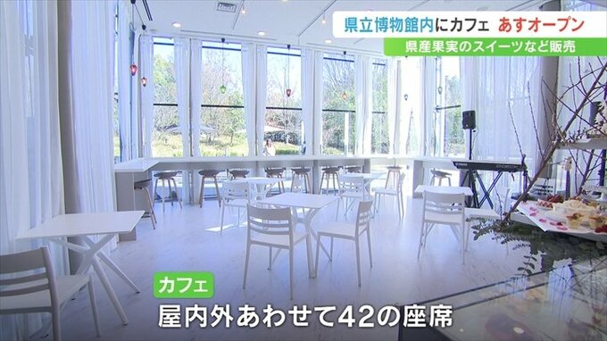 県立博物館の一角に17日誕生するカフェがこちらです。