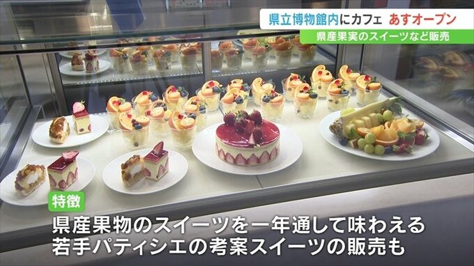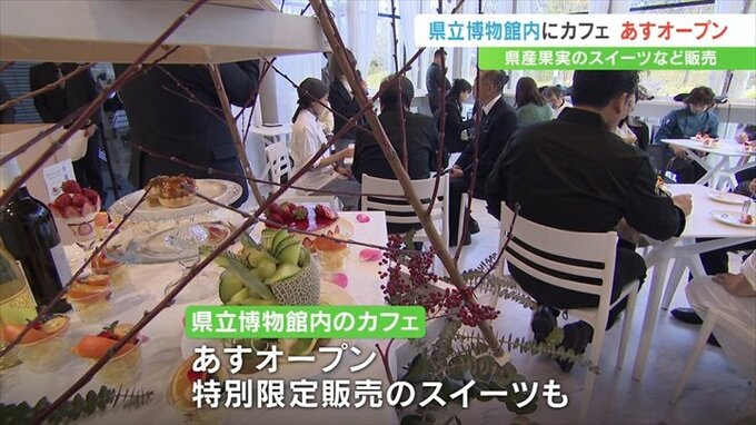 県産果実を使ったスイーツが味わえるのが特徴で、16日関係者にお披露目されました。