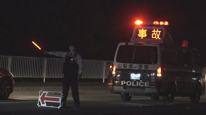消防によりますと、この事故で前から2台の車の50代女性が首の痛み、前から3台目の車の40代男性が両足に痛みを訴えて甲府市内の病院に運ばれました。