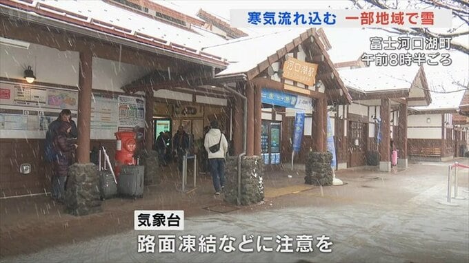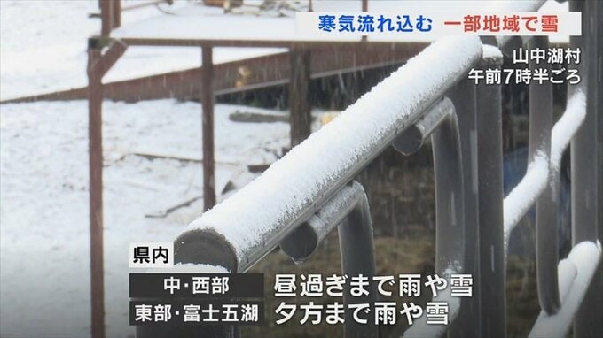 甲府地方気象台によりますと県内は中西部がこの後昼過ぎまで、また東部・富士五湖は夕方まで雨や雪が降ると見られています。