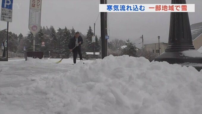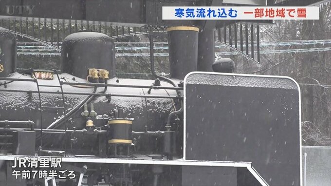 北杜市のJR清里駅周辺では、未明から降った雪が積もり、朝から雪かきをする人の姿が見られました。