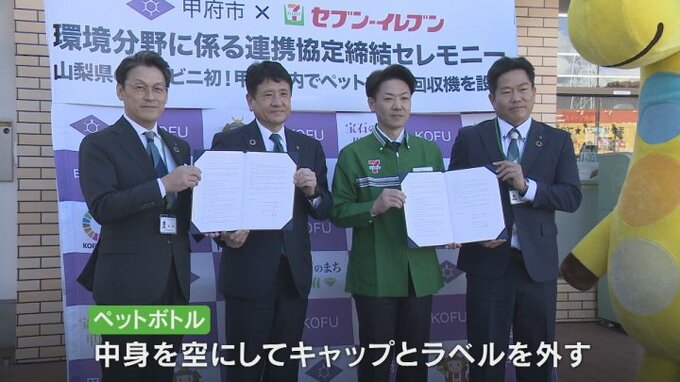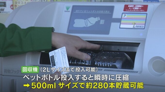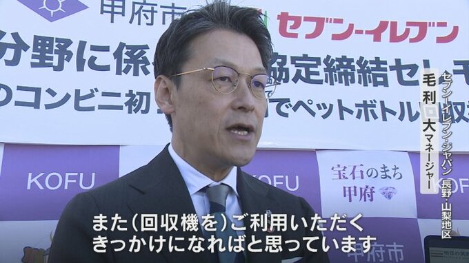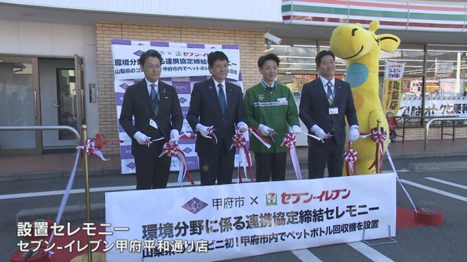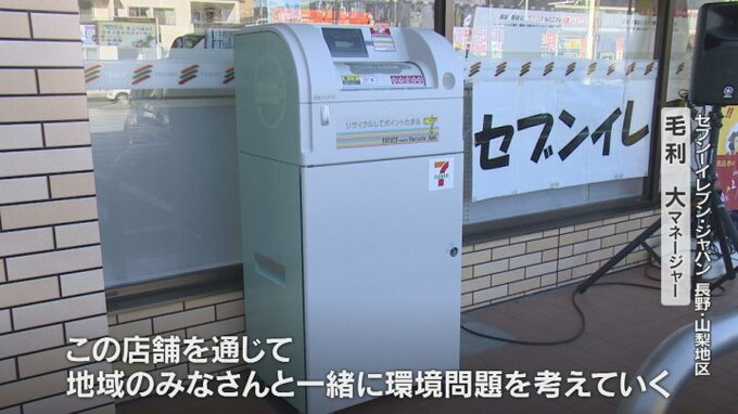 甲府市のコンビニエンスストアに県内で初めてリサイクルで電子マネーが貯まるペットボトル回収機が設置され、プラスチックごみの削減に向けた取り組みが始まりました。