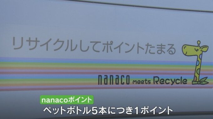 利用者は電子マネーのnanacoカードをかざすと、ペットボトル5本につき1円相当のポイントをもらうことができます。