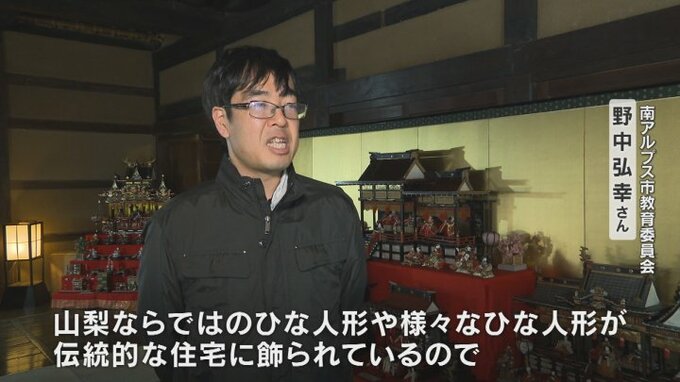 「山梨ならではのひな人形やさまざまなひな人形がこの伝統的な住宅に飾られているので、ひな祭り独特の華やかな雰囲気と合わせてお楽しみいただければと思う」