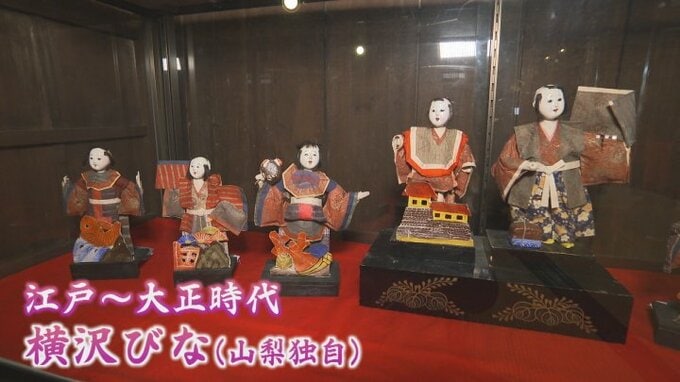 また江戸から大正時代にかけて作られた山梨独自の「横沢びな」には今年初公開のものもあり、「城」や「鯛」、「玉手箱」など縁起のよいものが飾られていて、これらがセットで残っているものは数少ないということです。