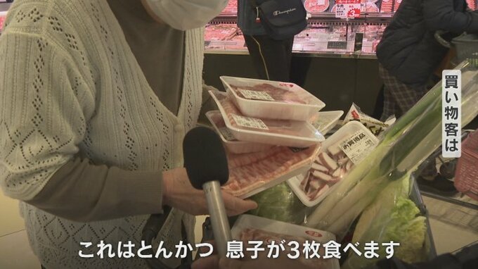 「安いですよ~半額ですもん。これは焼きそばに入れます。これはハンバーグに。これはとんかつ、息子が3枚食べます」