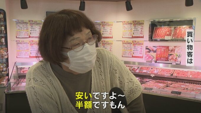「おおげさかもしれないが(普段の)5倍くらいの客が来ている。豚のひき肉、切り落としが一番人気。鮮度、味ともに自信があるので買ってほしい」