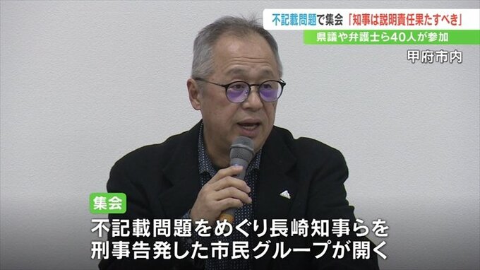 この集会は政治資金収支報告書の不記載問題で長崎知事らを甲府地検に刑事告発した市民グループが開いたものです。
