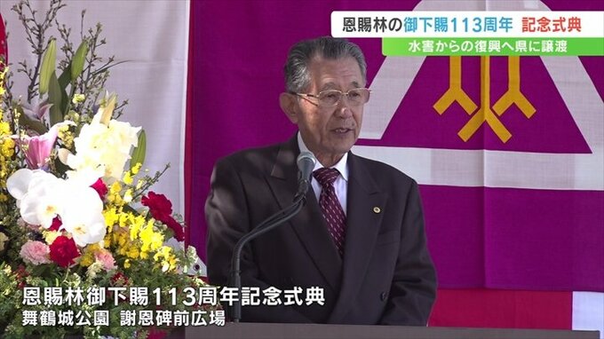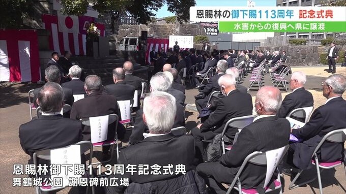 式典には県や恩賜林保護組合などから関係者約60人が出席し、明治政府からの御沙汰書が奉読されました。