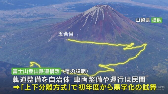 会議は冒頭以外は非公開で行われ、県によりますと登山鉄道が走る軌道などの整備を自治体が行ない、車両整備や実際の運行を民間が行う「上下分離方式」の採用で運行初年度から黒字化できるという試算が示されたということです。