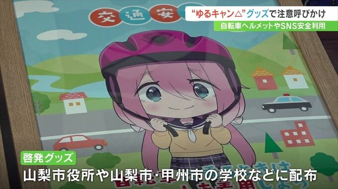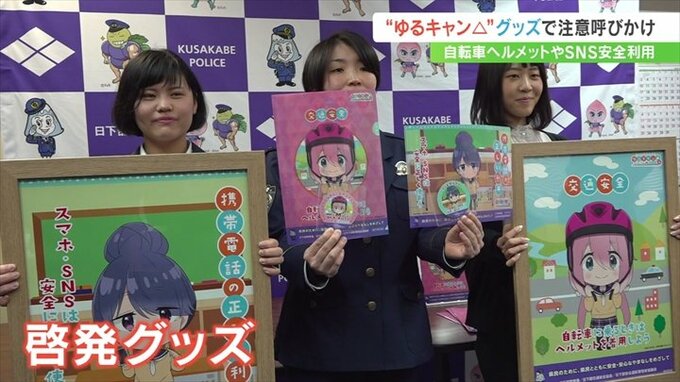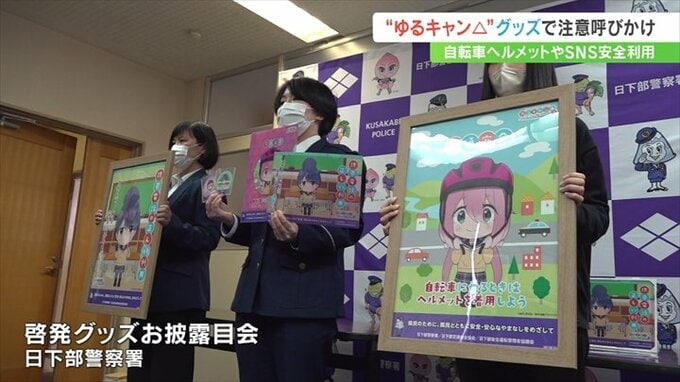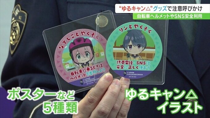 啓発グッズは日下部警察署などが作成したもので、主に若者に交通安全やSNSを利用する時の注意を促そうと、若い世代に人気のゆるキャン△とタイアップしたということです。