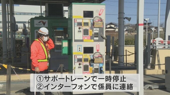 この場合、サポートと表示されたレーンに入り一時停止し、備え付けのインターフォンで係員に連絡し指示を仰ぐ必要があるということです。