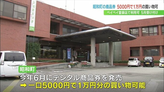 一方昭和町は、一口5000円で1万円分の買い物ができるデジタル商品券を今年6月に販売する予定です。