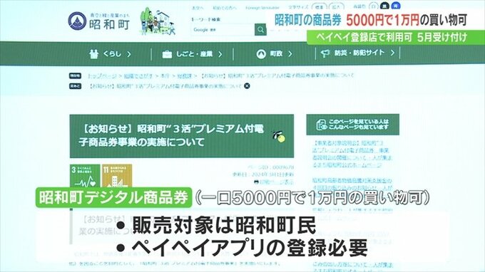 販売の対象は昭和町民で、キャッシュレス決済の「ペイペイ」アプリの登録が必要です。