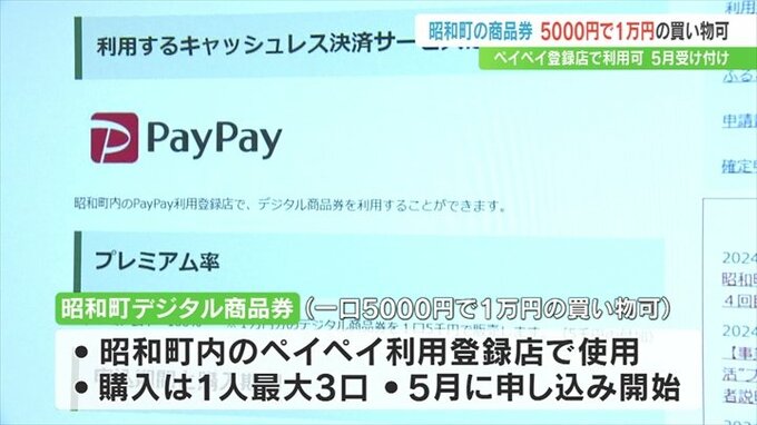 このデジタル商品券は昭和町内のペイペイ利用登録店で使うことができ、1人3口まで購入可能で5月から申し込みを受け付けます。