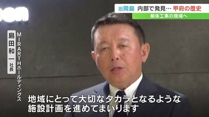 「今、私たちがこの黒焦げたところを見てみると、これからどんなふうに再生していくんだろうと。かつての岡島の思いとこれから再生を担う会社のコラボレーションがはじまるということで、(遺構の発見は)大変意義があることだと思う」