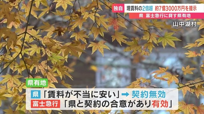 山梨県は富士急行に貸す県有地の新年度の賃料について現在の2倍以上となる約7億3000万円を提示していることがわかりました。